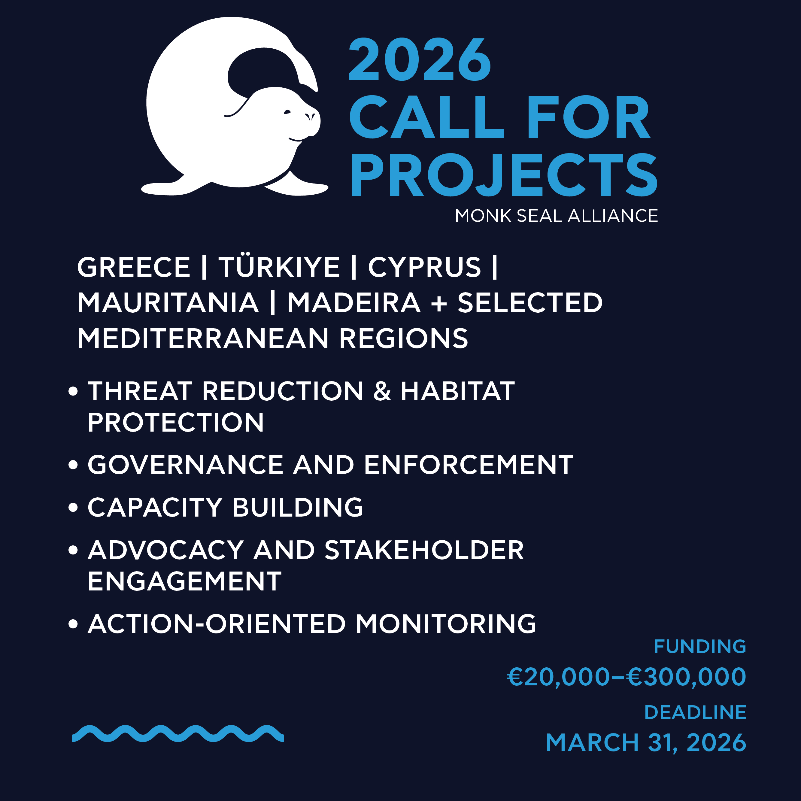 The Monk Seal Alliance invites organizations to submit pre-applications for projects running from spring 2027 to 2030.